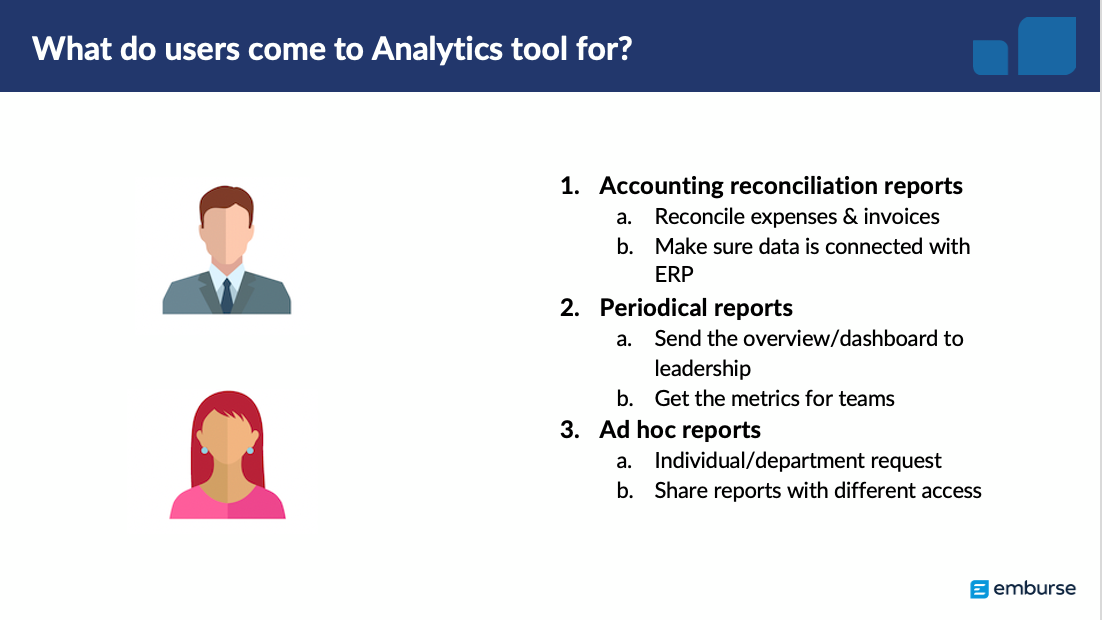 1. Explore general users’ intentions when using Emburse Analytics