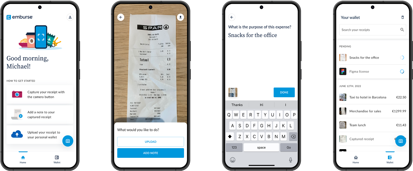 The design of Emburse Mobile app aims to simplify the expense experience for employees and finance teams. Users can effortlessly create expenses by simply taking a photo of each receipt with their smartphones and, with just a few taps, upload them to Chrome River to have expenses automatically created and categorized. Receipts are then accessible at any time, on any device.