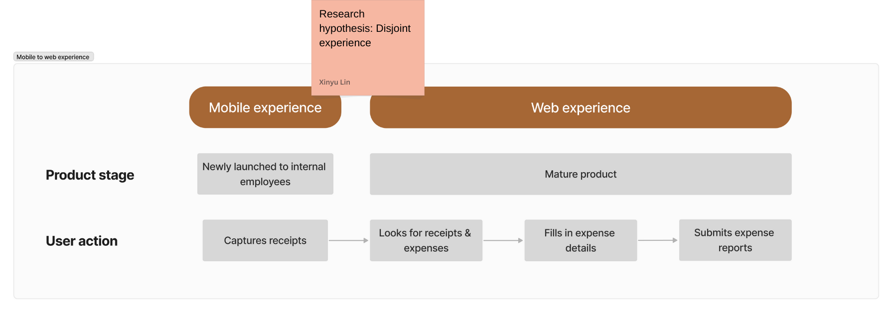 Disjoint user experience between two devices: Having worked closely with both the mobile and expense teams, I have developed a thorough understanding of the product flows, step by step. While observing from a user’s standpoint, I proposed a research hypothesis that the experience becomes fragmented when transitioning from one device to another.