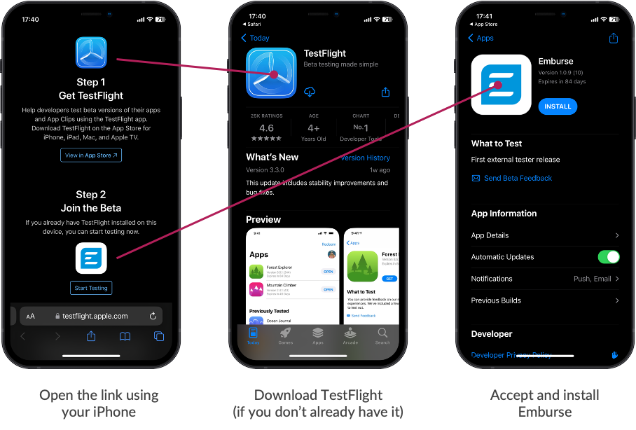In section A, we required every participant to download the emburse mobile app through Test Flight, and we prepared instruction documents for both IOS & Android users.